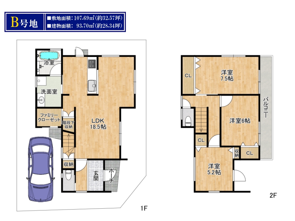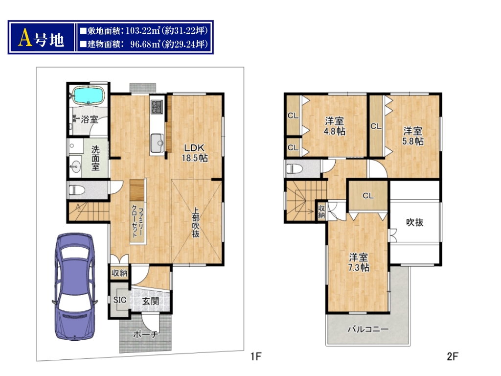 | ■建物面積 | 93.70㎡~96.68㎡ |