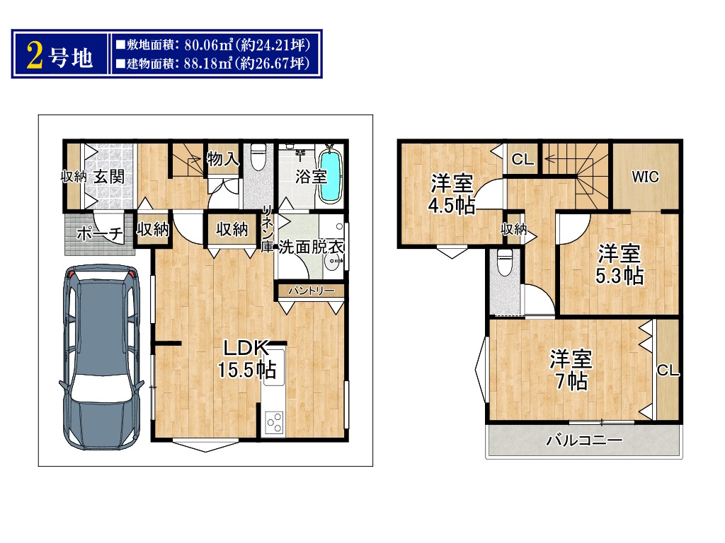 | ■土地面積 | 80.06㎡~86.14㎡ |